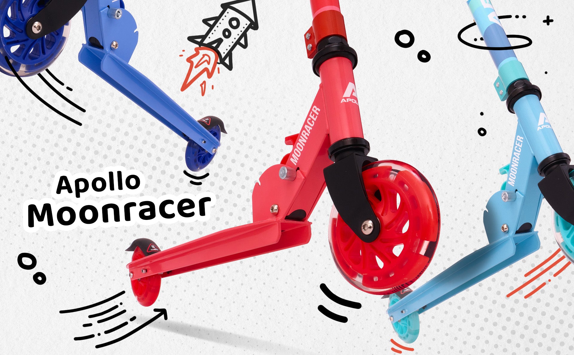 Hulajnoga miejska„Moonracer” LED dla dzieci z amortyzacją